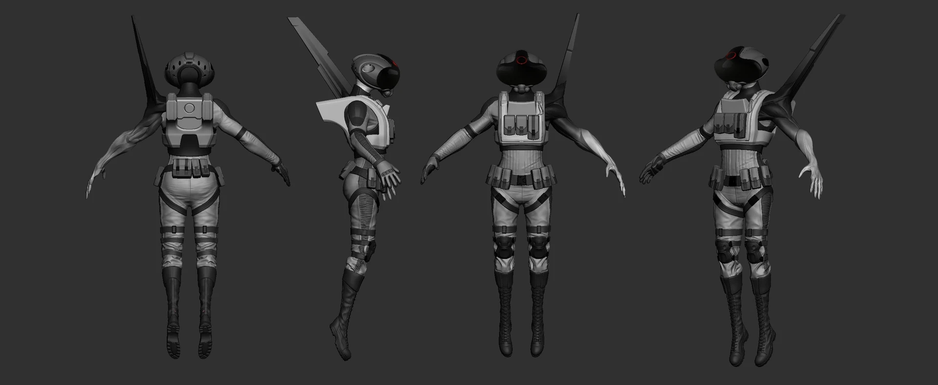 The Sentinel is one of our enemy types for Synapse, which soars around unleashing a laser from it's glowing red halo. This character was a particularly fun design to realise in 3D, working closely with concept and design, to combine elements of a pilot, rotor blades of a helicopter. And features similar to a cyclops and the psyco mantis.